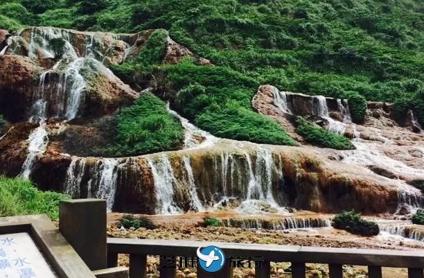 黄金瀑布位于金瓜石往水湳洞的公路边,一般瀑布是水流行进间因地势落差而造成,黄金瀑布却是地下伏流涌出地面,前后都见不到溪流。